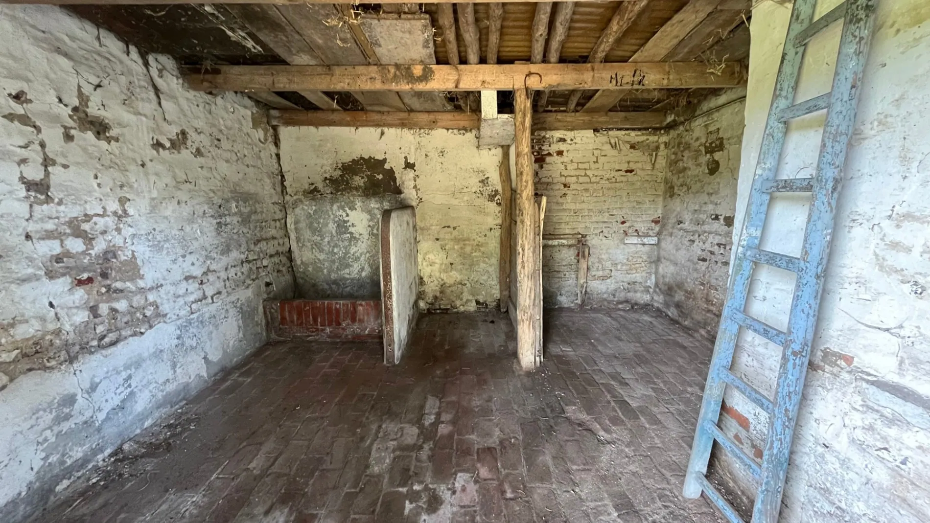 Indeling bijgebouw: 1 ruimte, 1 garage, 4 stallen en een grote zolder.