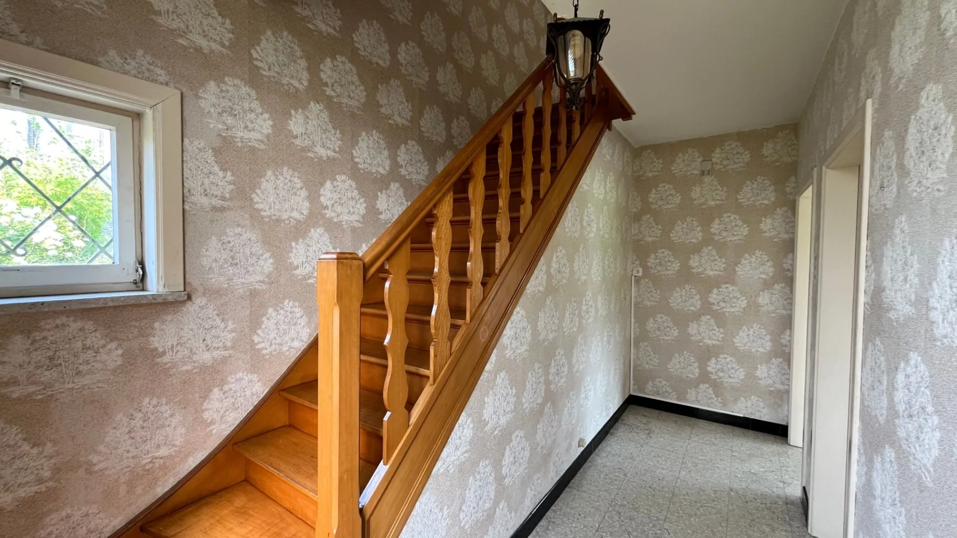 De woning beschikt over een veranda, een leefruimte opgedeeld in twee ruimtes, een keuken op de gelijkvloerse verdieping.