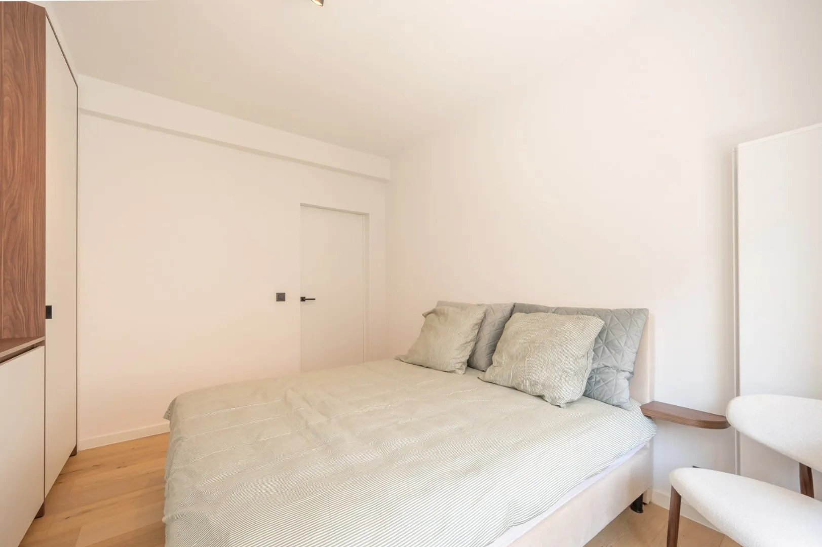 Indeling : inkomhal - leefruimte met terras - ingerichte keuken - afzonderlijk toilet - grote slaapkamer - terras aan de achterzijde - slaaphoek - badkamer met inloopdouche en lavabo - privatieve kelder - gemeenschappelijke fietsenberging op het gelijkvloers.