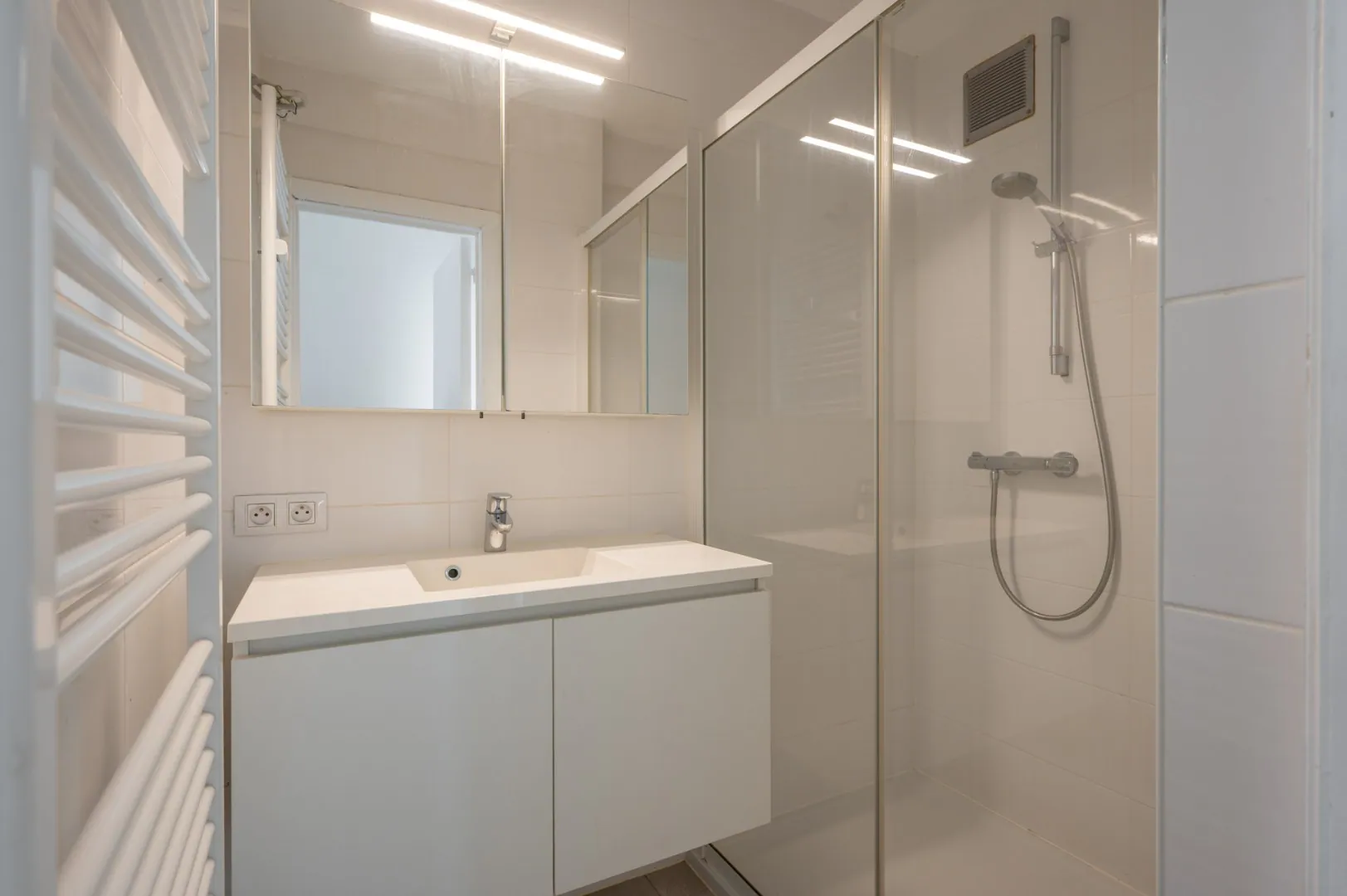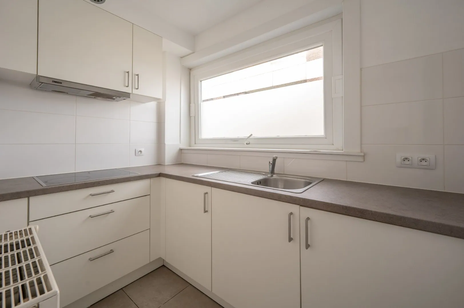 Indeling : inkomhal - gastentoilet - leefruimte - ingerichte keuken - badkamer met douche en lavabo - 2 slaapkamers.