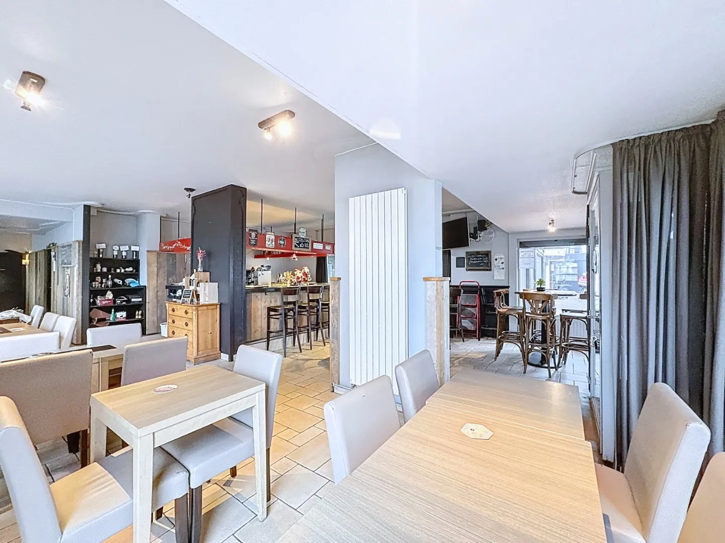 Indeling : veranda/terras - verbruikszaal met toog - keuken - sanitaire ruimte - zithoek/kamer - toiletten en ruime berging/opslagplaats in de kelderverdieping.