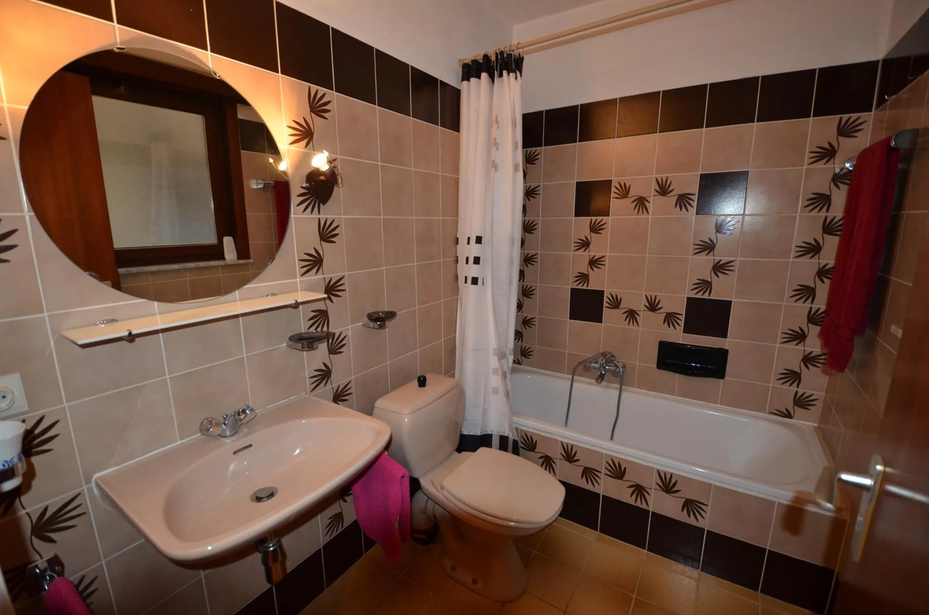 1 slaapkamer met dubbel bed en badkamer met ligbad en lavabo, toilet, 1 slaapkamer met dubbel bed en