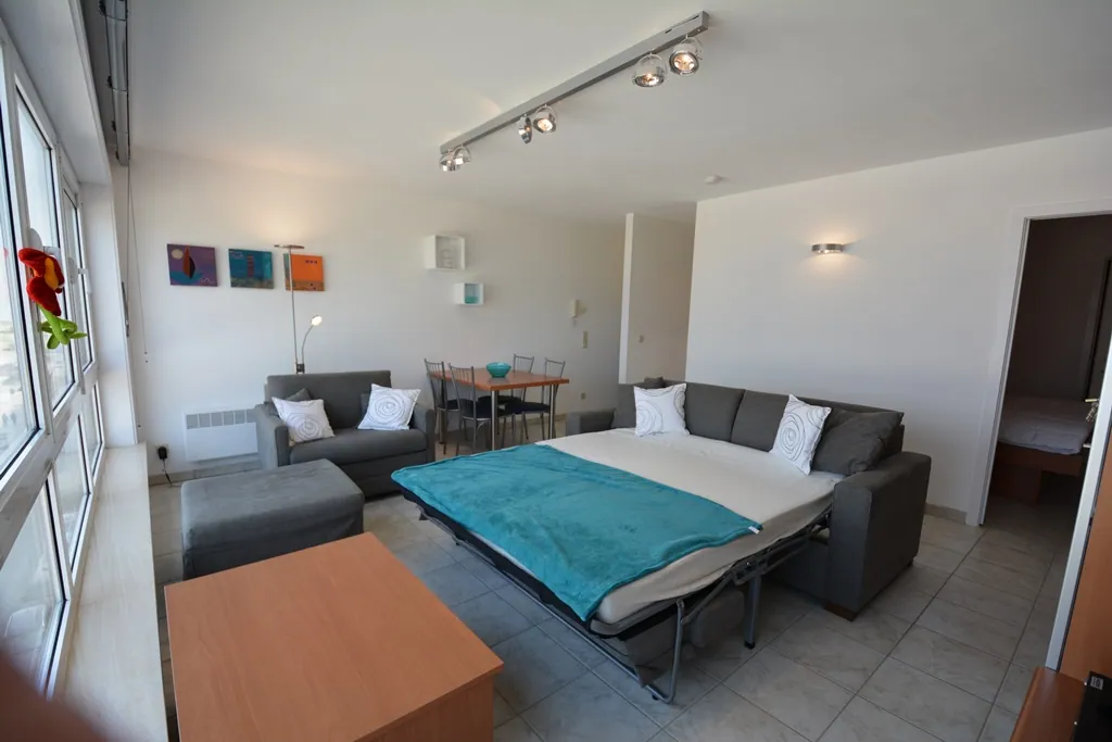 Indeling: ruime leefruimte met digitale televisie, canapé voor 2 personen, open keuken dat voorzien