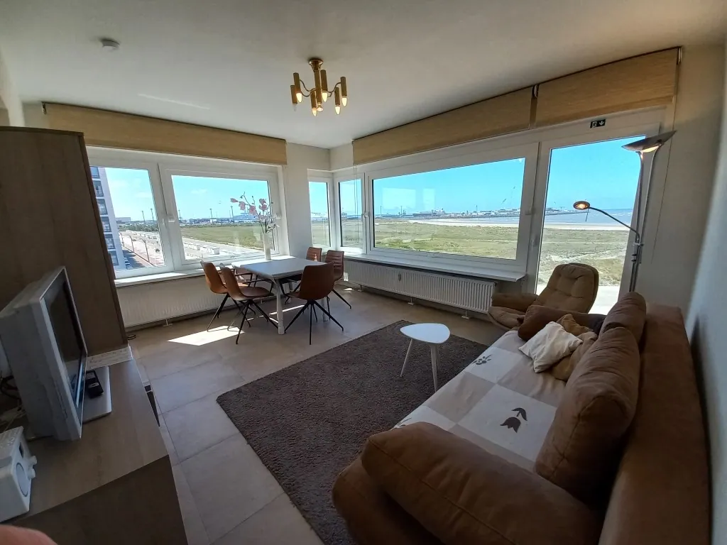 Gezellig en zonnig appartement met zicht op zee en het Vissershuldeplein te Heist .