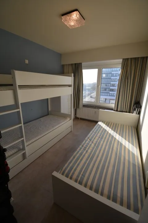 slaapkamer met enkel bed en stapelbed . Een absolute topper !