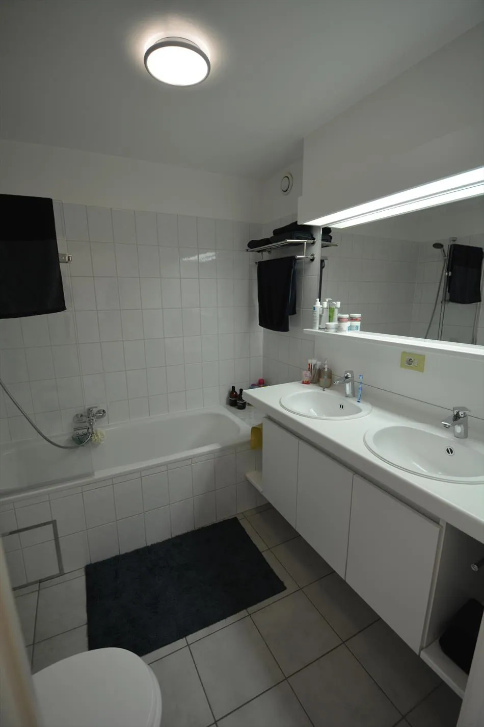 Het appartement heeft een aangename leefruimte met balkon en fantastisch uitzicht. Er is een ingerichte keuken met vaatwas, toilet, badkamer met ligbad en dubbele lavabo, berging en 2 volwaardige slaapkamers.