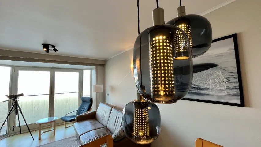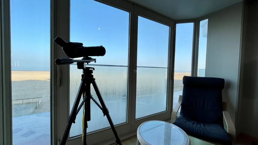 Indeling: slaapkamer met dubbel bed, badkamer met douche en toilet, berging, woonkamer met zicht op zee en een comfortabel zetelbed voor 2 personen, open ingericht keuken uitgerust met microgolf, koelkast met vriesvak, koffiezet, waterkoker,... Strijkplank met stoomstrijkijzer ook aanwezig. WIFI voorzien.